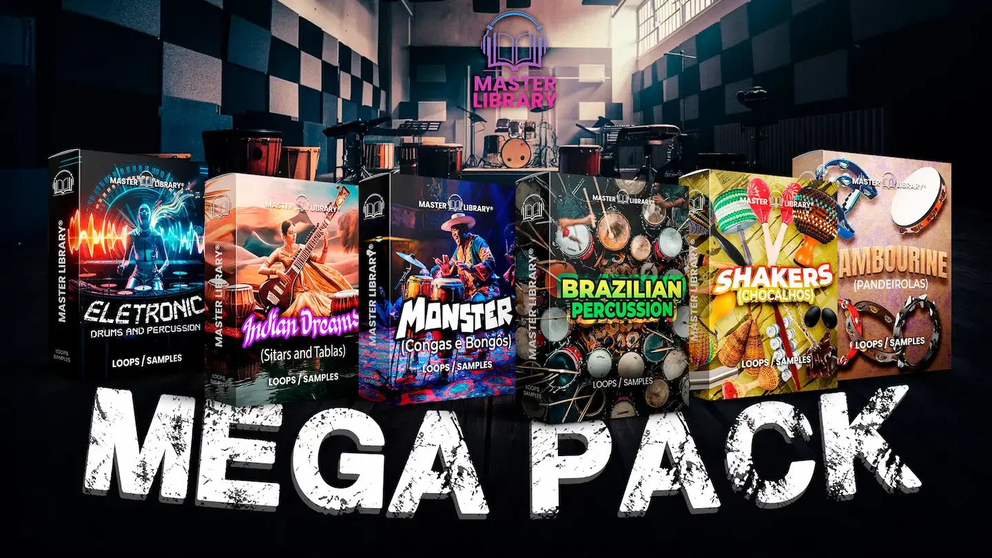 Somente agora, você pode levar TODOS os 6 pacotes premium de percussão da Master Library em uma única oferta — com um super desconto absurdo!